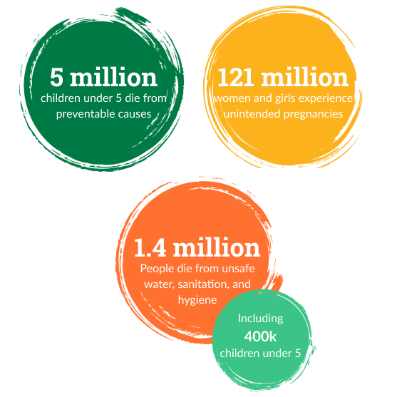 Poor sanitation and unsafe drinking water are major contributors to malnutrition and stunting in children. Inadequate water, sanitation and hygiene (WASH) infrastructure also contributes to the spread of waterborne diseases such as cholera, diarrhea and typhoid, which are leading causes of illness and death in low- and middle-income countries. According to the WHO, 1.4 million annual deaths could be prevented with safe WASH. Strengthening WASH systems in these areas is essential for improving public health, reducing disease transmission and fostering sustainable development. Investments in WASH programs also yield significant economic returns by creating healthier communities that can fully participate in economic activities.