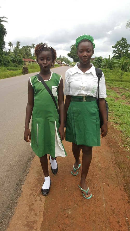 Abibatu (left) and her sister walk to school.
