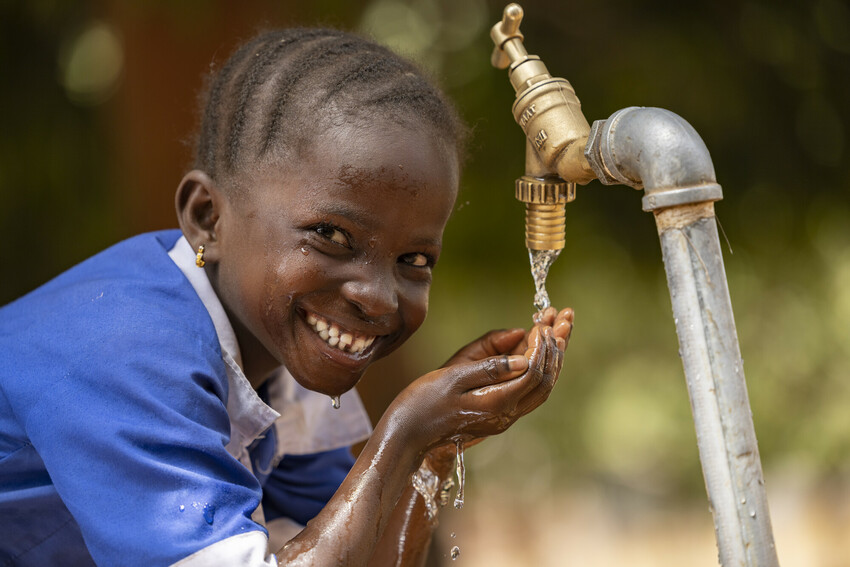 Ida, 5, drinks clean water from a tap installed at her school by ChildFund.
