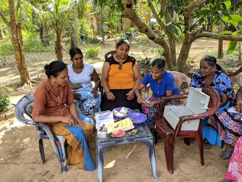 Mothers in ChildFund’s program near Puttalam, Sri Lanka, attend a meeting of their Village Savings & Loan group. The group, which meets twice a month, allows the women to save money together and grant loans to members in need – a powerful safety net for those facing food insecurity.