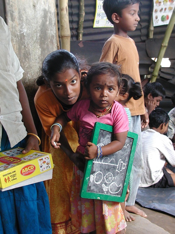 Older children play with younger children at a Child-Friendly Space set up by ChildFund after the most disastrous tsunami on record devastated communities throughout South Asia in 2004.