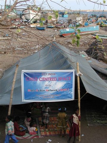 A bird’s-eye view of one of our Child-Friendly Spaces in India, 2005.