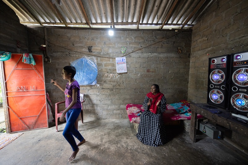 Sidara manages all this while continuing to help Sheema build her strength. Today, as a joyful adolescent girl with a knack for music and dancing, Sheema communicates with signals and sounds that only her parents might be able to interpret. Her laughter, however, is unmistakable. Her parents recently bought her a new woofer sound system so she can dance to her favorite songs, an activity that keeps her engaged for hours on end. “She knows how to use sound system and put on music,” says Sidara. “This helps her to stay physically active.”