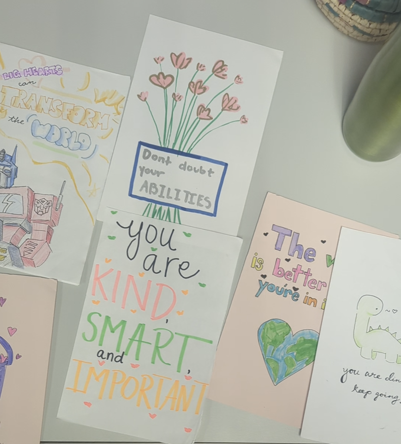 A handful of encouraging cards Mateo’s classmates made for ChildFund to distribute to children.